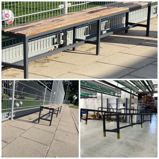 De trouwe bankjes langs ons veld hebben een flinke opknapbeurt gekregen – en dat was hard nodig! De frames begonnen te roesten en zagen er niet meer zo fraai uit.